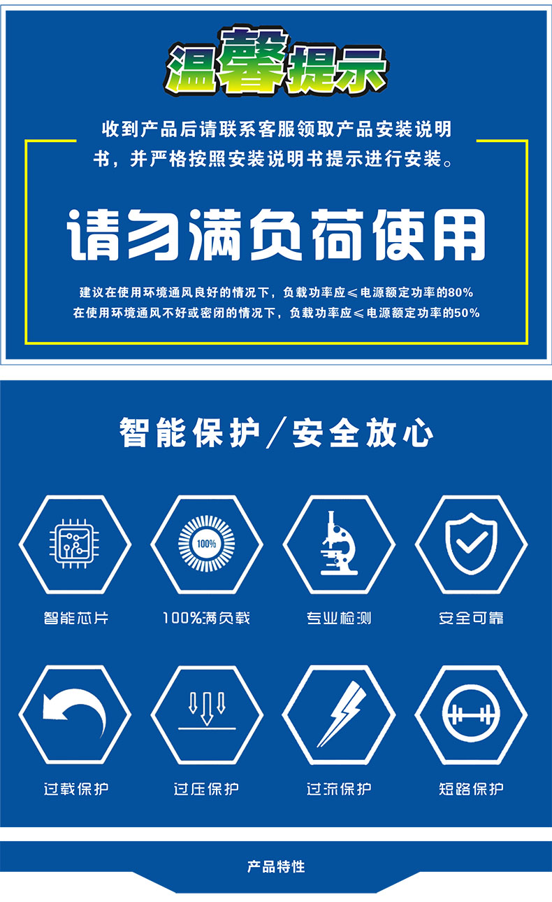 保护种类:短路/过负载/过电压/过温度