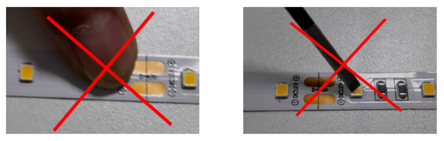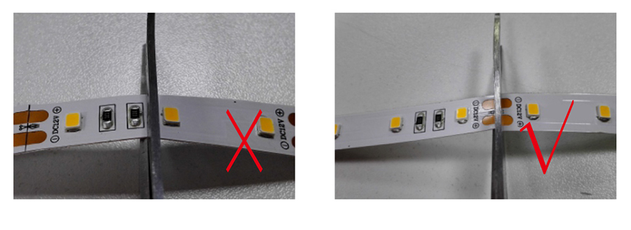 6、剪切灯带时须沿剪刀标注线处剪断,如需增加连接导线,焊接在剪断处的下一个剪刀标记处。