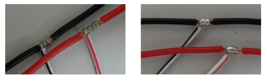 7、S型软灯带需2米补一次电,直条型软灯带需5米补一次电,可用回路线材单独拉一条正极和负极,然后在回路线中间剥开,主线焊在回路线上且在字的中心处出线,可分化整体灯带的电压,避免亮度不均匀。(灯带导线接主线时,条件允许的情况下,建议使用电烙铁焊接,避免使用缠绕式接线方式,缠绕圈数不够或时间长了出现接触不良的情况。)