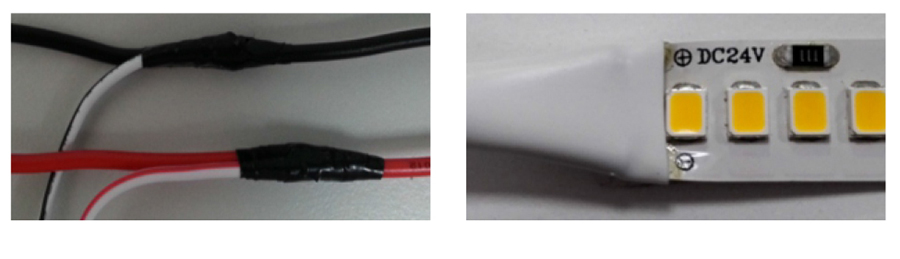 8、灯带导线与主线接好后,连接点做好绝缘处理,如果是在灯带上面焊接,使用热缩管或对应防水堵头做好加固或防水处理。